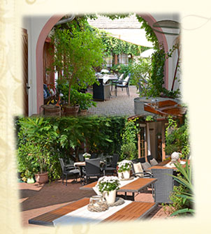 Unser romantischer Innenhof bietet genügend Platz für entspannte Feierpausen. Genießen Sie seine Magie und Ruhe und nehmen sie sich etwas davon mit nach Hause.